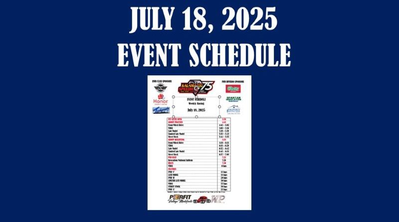 A packed program of all four weekly classes plus the Vintage Modifieds see action at Kalamazoo Speedway on Friday, July 18. Let’s go racing! Event Schedule 07-18-2025 Version A