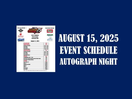 The Event Schedule for August 15, 2025 is here. All four weekly classes race plus it’s Autograph Night. SPECIAL: 8-person skyboxes $200; 16-person $400. [...]