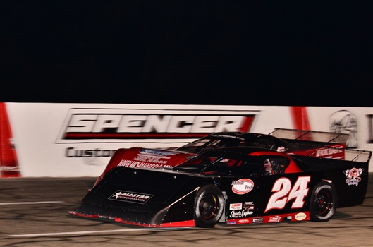 Tyler Roahrig worked his way from 14th starting position all the way to the front, making the winning pass with 12 laps to go and hanging on to win the Intimidator 100 Friday night at Kalamazoo Speedway.  Roahrig cracked the top ten on lap 11 but didn’t crack the top five for good until lap 40 of the 100 lap event.  He took over second place on lap 75 and then made the winning pass on Doug True on lap 88.  From there Roahrig held off Jeff Ganus, Brian Bergakker, True and Matt Frazier to collect the victory.  Tyler’s father, JR, finished sixth beating out three-time defending champion Mike “Bubba” Brooks, fast qualifier Rick Senneker, Tom Thomas and 12-time champion Andy Bozell.  Jacob Maynard picked up the victory in the last chance race.  The win combined with his third place qualifying effort gives Roahrig, who ran his fastest lap on the final lap of the event,  the early point lead over Bergakker (-6), Ganus (-14), Senneker (-24) and Frazier (-28).